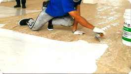 具有更優(yōu)良的附著力及滲透性更易施工,砂漿中涂厚涂都不發(fā)軟,高光澤度高耐磨,亮度可達(dá)72度,叉車碾壓無變形,耐水泡30天不泛白;